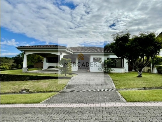 Casa de un sólo nivel con moderno diseño de concepto abierto con amplias áreas sociales y privadas, techos altos decorativos y amplios ventanales que brindan mucha luz y ventilacion natural.